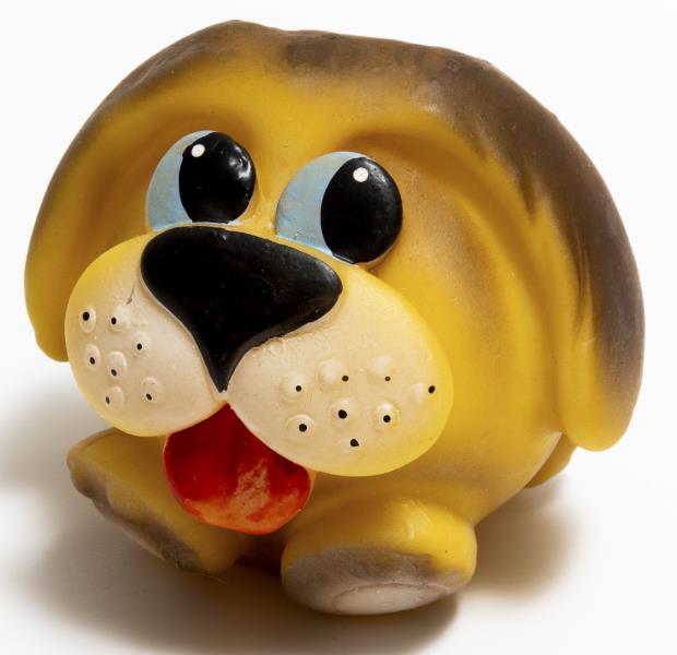 Gumijas rūpnīca "Dobele". Rotaļlieta "Suns - Džeks, dzeltens ar tumši brūnu tonējumu". 1993-1994.gads