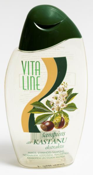 Ķīmiskā rūpnīca "Spodrība". Trauks plastmasas "VITA LINE - šampūns ar kastaņu ekstraktu". 2001.gads