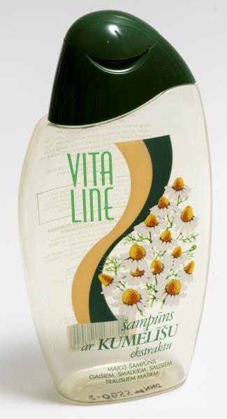 Ķīmiskā rūpnīca "Spodrība". Trauks plastmasas "VITA LINE - šampūns ar kumelīšu ekstraktu". 2001.gads