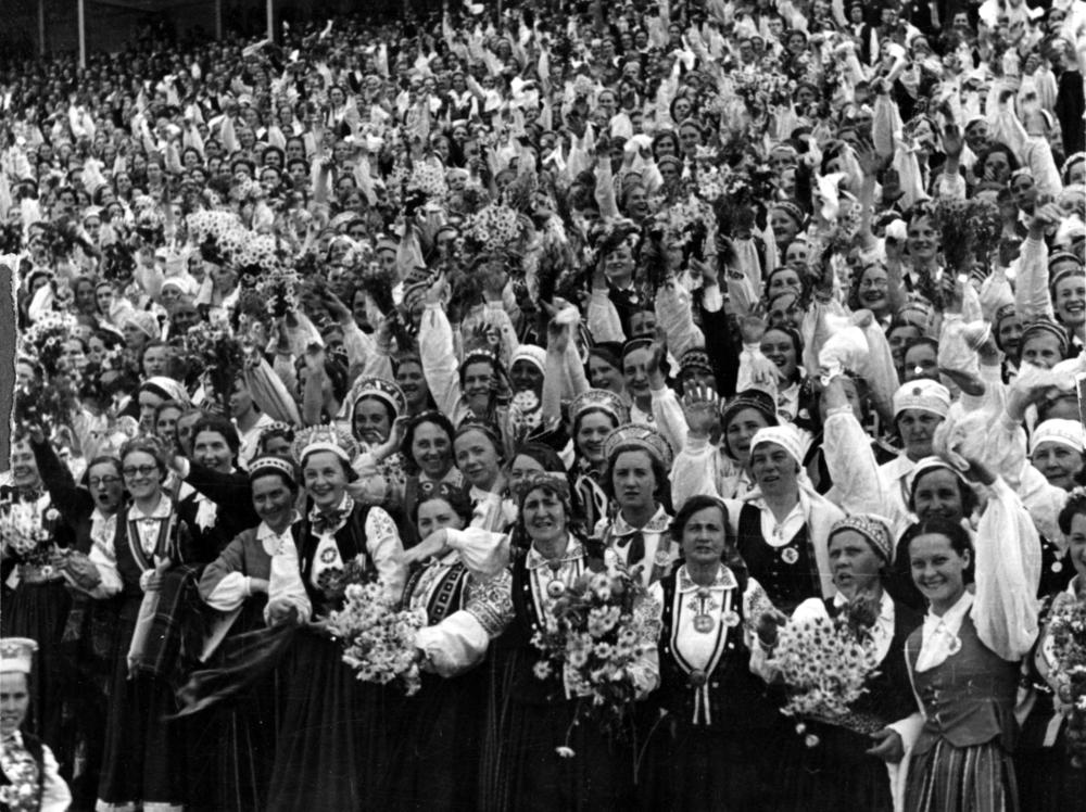 IX Vispārējo latviešu Dziesmu svētku kopkoris koncertā Uzvaras laukuma (tagad Uzvaras parks) svētku estrādē.
