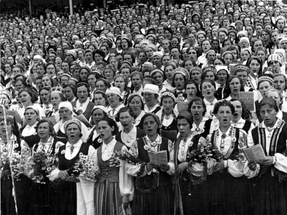 IX Vispārējo latviešu Dziesmu svētku kopkoris koncertā Uzvaras laukuma (tagad Uzvaras parks) svētku estrādē.