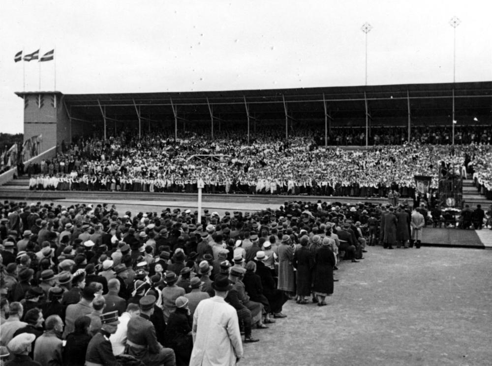 IX Vispārējo latviešu Dziesmu svētku (tolaik - Devītie latvju vispārējie dziesmu svētki) koncerts Uzvaras laukuma (tagad Uzvaras parks) svētku estrādē.