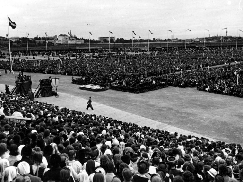 IX Vispārējo latviešu Dziesmu svētku (tolaik - Devītie latvju vispārējie dziesmu svētki) koncerts Uzvaras laukuma (tagad Uzvaras parks) svētku estrādē.
