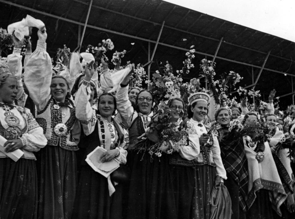 IX Vispārējo latviešu Dziesmu svētku dalībnieces koncertā Uzvaras laukuma (tagad Uzvaras parks) svētku estrādē.