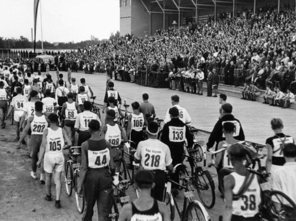 3. Latvijas riteņbraucēju Vienības brauciena noslēguma parāde Uzvaras laukumā (tagad Uzvaras parks).