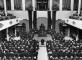 Latvijas Universitātes pastāvēšanas 19 gadu jubilejas svinības LU Lielajā Aulā. Svinību dalībniekus uzrunā Latvijas Universitātes prorektors, profesors Jānis Kārkliņš. Centrā sēž Latvijas Valsts un Ministru prezidents Kārlis Ulmanis.