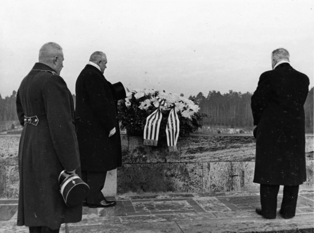 11. novembra - Latvijas armijas, Lāčplēša Kara ordeņa kavalieru un kara invalīdu dienas svinības. Latvijas Valsts un Ministru prezidents Kārlis Ulmanis noliek piemiņas vainagus Brāļu kapos. No kreisās: 1. Latvijas armijas komandieris, ģenerālis Krišjānis Berķis, 2. Latvijas Valsts un Ministru prezidents Kārlis Ulmanis, 3. kara ministrs ģenerālis Jānis Balodis.