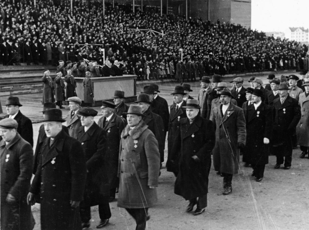 11. novembra - Latvijas armijas, Lāčplēša Kara ordeņa kavalieru un kara invalīdu dienas svinības. Lāčplēša Kara ordeņa kavalieru bataljons armijas parādē Uzvaras laukumā.