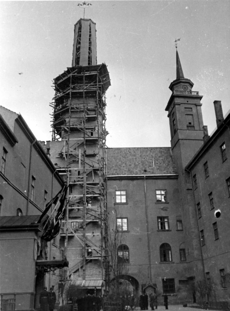 Rīgas pils pārbūves laikā pēc arhitekta Eižena Laubes projekta tiek izbūvēts Triju Zvaigžņu tornis.