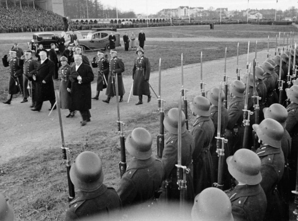 Latvijas armijas parāde par godu Latvijas Republikas proklamēšanas 20. gadadienai veltītajiem svētkiem Uzvaras laukumā (tagad Uzvaras parks).