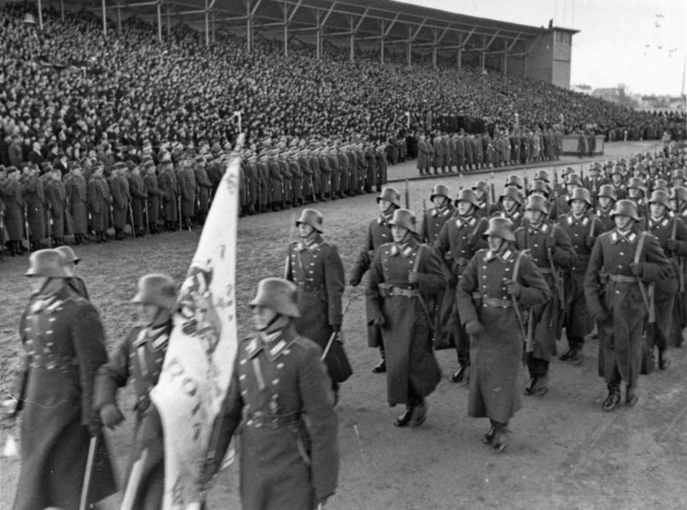 Latvijas armijas parāde par godu Latvijas Republikas proklamēšanas 20. gadadienai veltītajiem svētkiem Uzvaras laukumā (tagad Uzvaras parks).