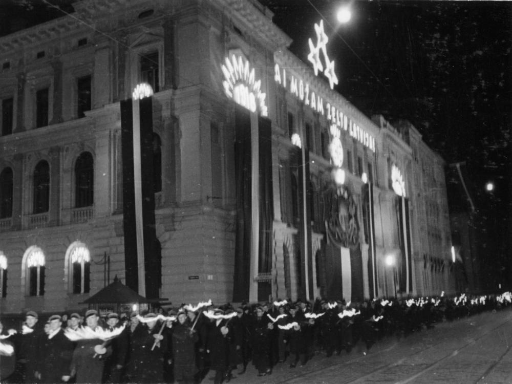Studentu lāpu gājiens Rīgas ielās par godu Latvijas Republikas proklamēšanas 20. gadadienas svinībām.