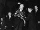 Aktrise Ludmila Špīlberga pasniedz ziedus Latvijas Valsts un Ministru prezidentam Kārlim Ulmanis, sagaidot viņu Latvijas Rakstu un mākslas kameras atklāšanas svinībās Rīgas Latviešu biedrības namā. No kreisās: 1. Latvijas Valsts prezidenta adjutants pulkvedis Miervaldis Lūkins, 2. Latvijas Rakstu un mākslas kameras priekšsēdētāja vietnieks Jānis Rapa, 3. Kārlis Ulmanis, 4. Ludmila Špīlberga, 5. sabiedrisko lietu ministrs Alfrēds Bērziņš.