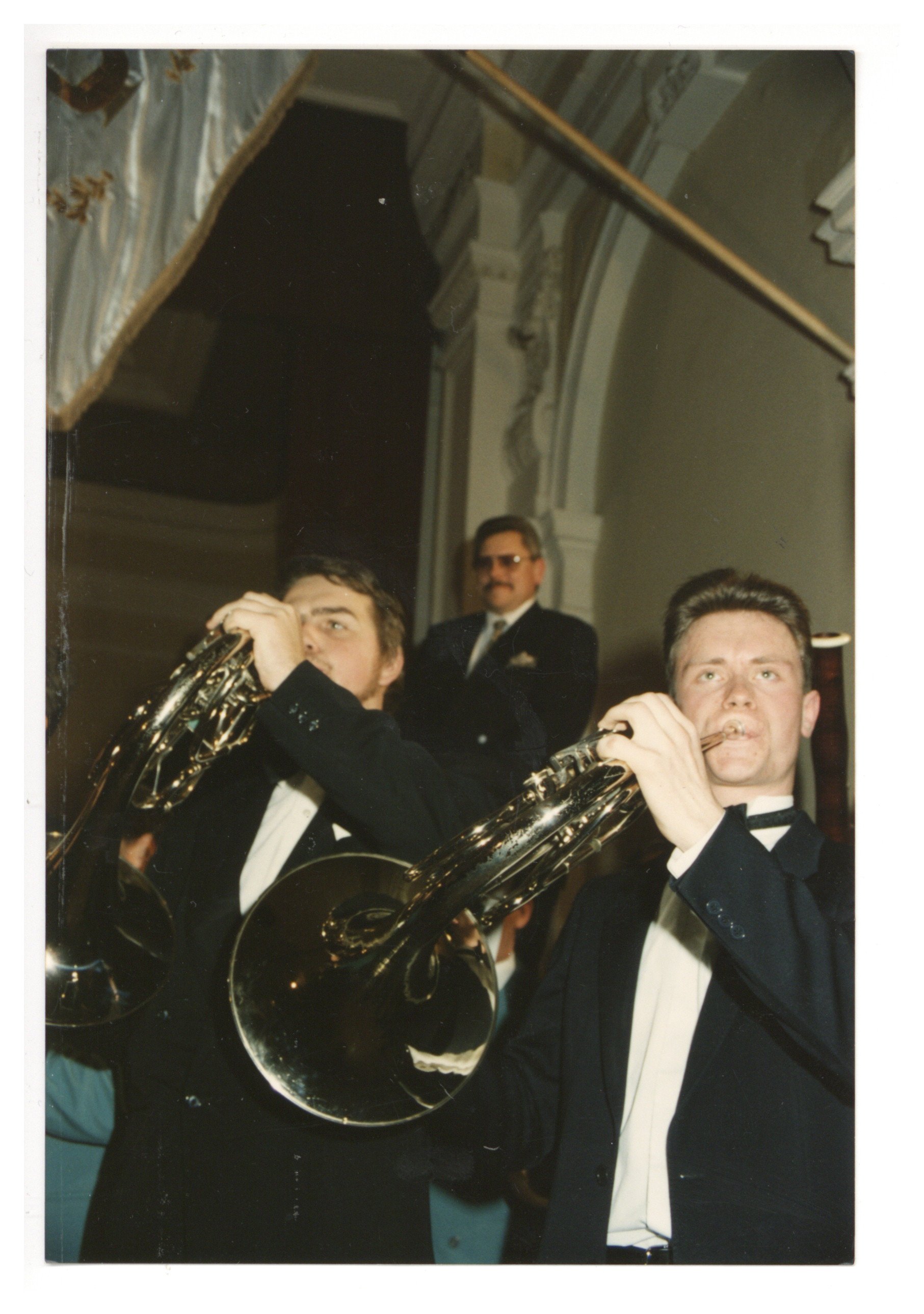 JVLMA 75. gadu jubileja : mežragu grupas mūziķi un JVLMA rektors Juris Karlsons
