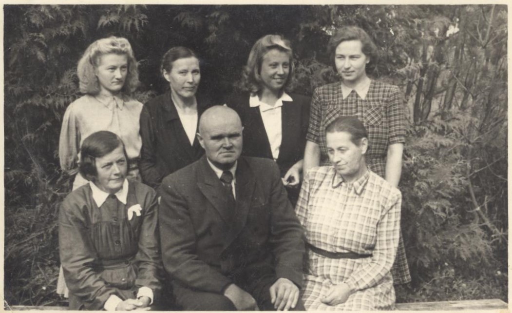 Pirmajā rindā no kreisās puses: Vanda Opse, direktors Jānis Dukmanis, M.Dukmane.