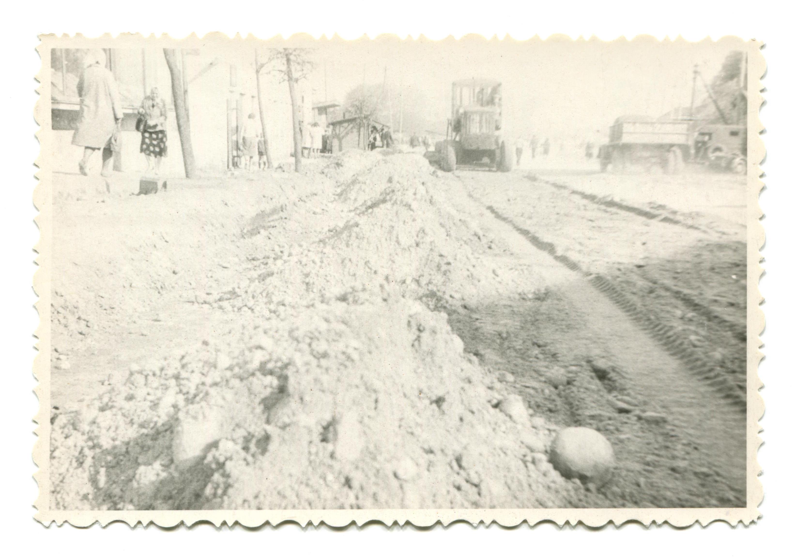 1966. gadā tika pabeigta Ezera ielas rekonstrukcija, labiekārtošana. Fotogrāfijā vidusdaļā redzams Kolhoza tirgus Ezera laukumā (arī Ezeru laukumā), kas minētajā vietā darbojās līdz 1967. gadam. Redzama ceļu remonta tehnika.