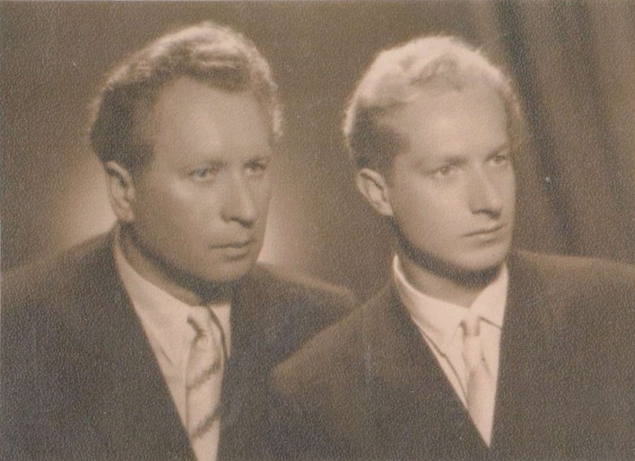 Arvīds Žilinskis un Valts Žilinskis 1958.gadā, dēlam absolvējot Latvijas Valsts konservatoriju.