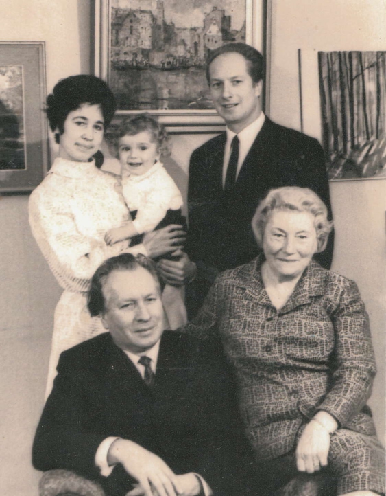 1.rindā no kreisās: Arvīds Žilinskis un komponista dzīvesbiedre Milda 2.rindā no kreisās: vedekla Dace, mazdēls Gints un dēls Valts 1970.gadā