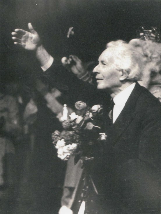 Komponists Arvīds Žilinskis pēc operas "Zelta zirgs" 200.izrādes Latvijas PSR Valsts operas un baleta teātrī 1987.gada 5.aprīlī