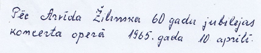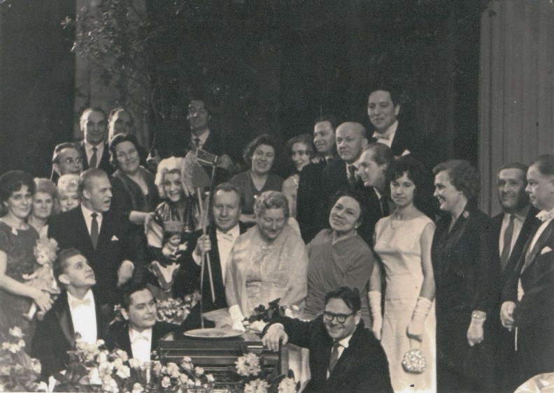 Arvīds Žilinskis kopā ar operas solistiem pēc 60 gadu jubilejas koncerta Latvijas PSR Valsts operas un baleta teātrī 1965.gada 10.aprīlī