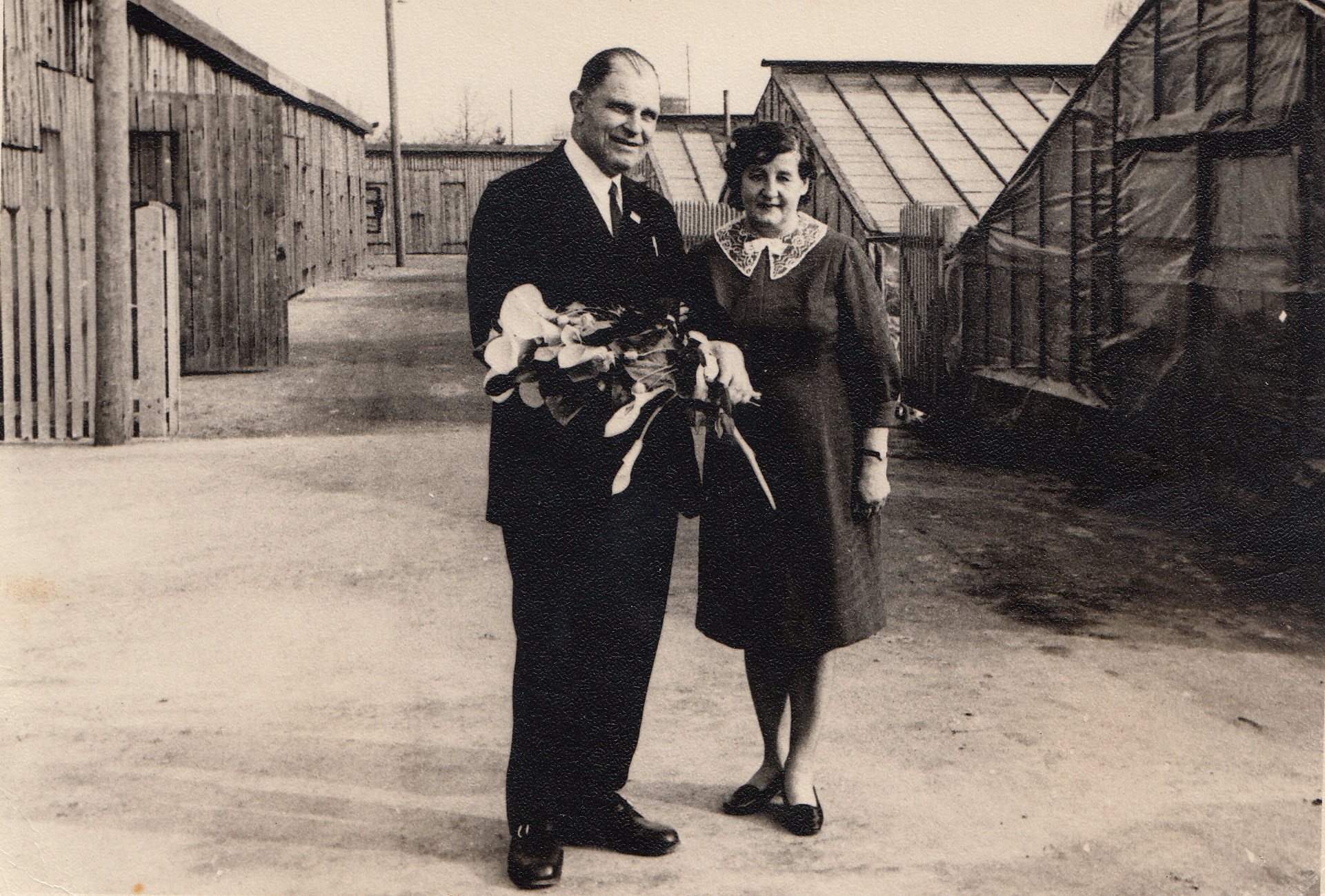 Selekcionārs Viktors Orehovs ar dzīvesbiedri Jadvigu Jēkabpils dārzniecības pagalmā