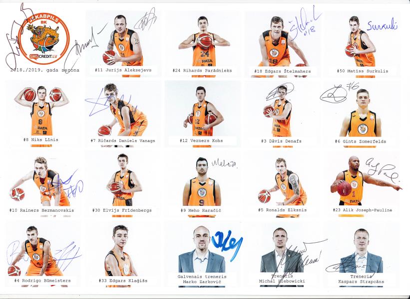 Uz fotogrāfijas atsevišķu spēlētāju un treneru autogrāfi: Jurijs Aleksejevs, Edgars Štelmahers, Matīss Surkulis, Ričards Daniels Vanags, Dāvis Danafs, Gints Zomerfelds, Rainers Hermanovskis, Meho Haračičs, Alik Joseph-Pauline, Rodrigo Būmeisters, Marko Zarkovičs, Michal Hlebowicki, Kaspars Strapcāns. Viens no autogrāfiem - neatšifrēts