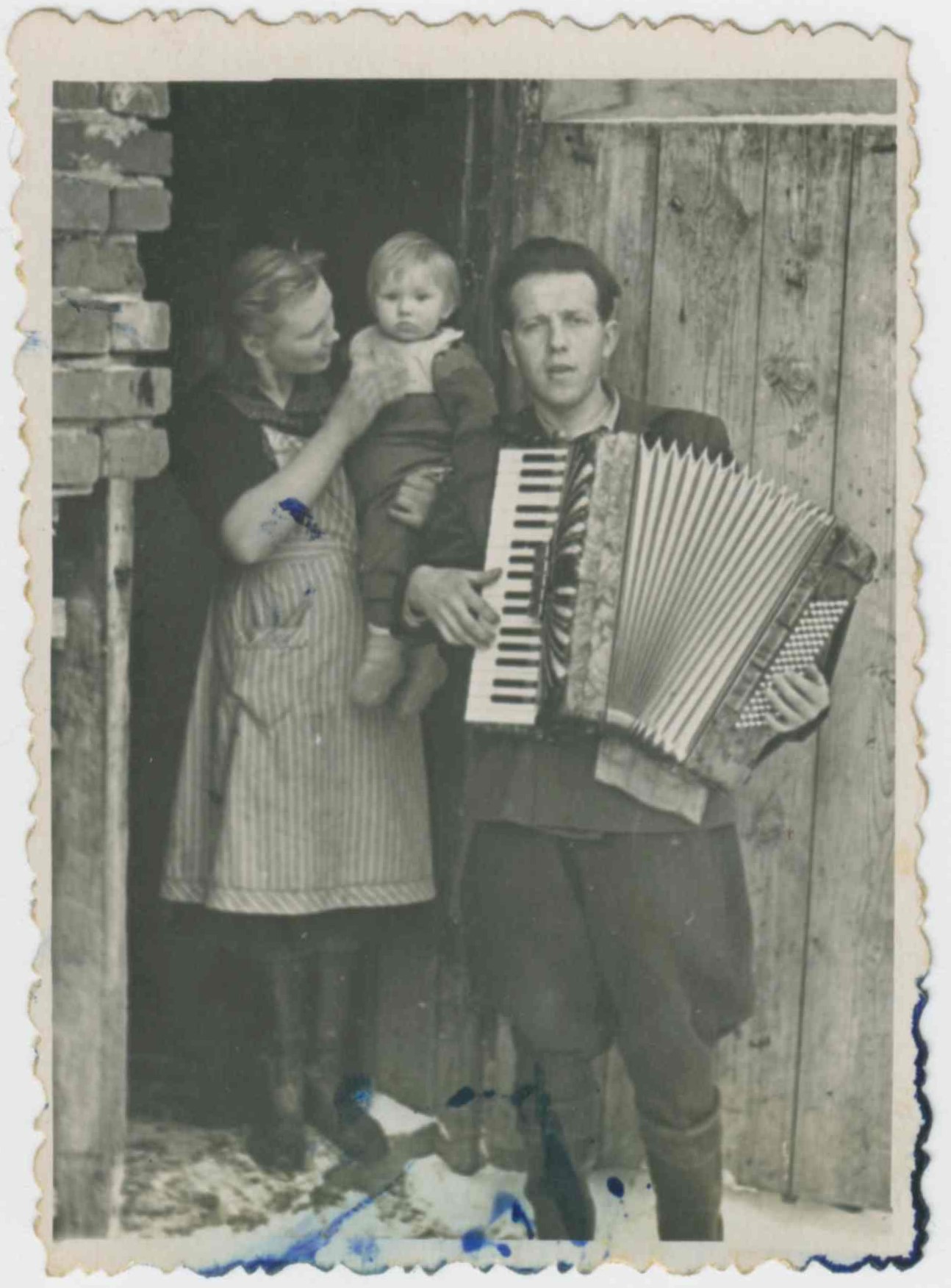 Mamma Aina Auzāne, tētis Evalds Auzāns un meita Anita Auzāne (precējusies Putne) pie Krapas muižas. Vietējie to dēvēja arī par Kremli.