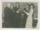 Kāzas Gulbenes rajona Daukstu ciemā. No labās puses: Genoveva un Pēteris Silavnieki, kolhoza "Savienība" priekšsēdētājs Osvalds Baldons, Augusts un Milda Lerhi.
