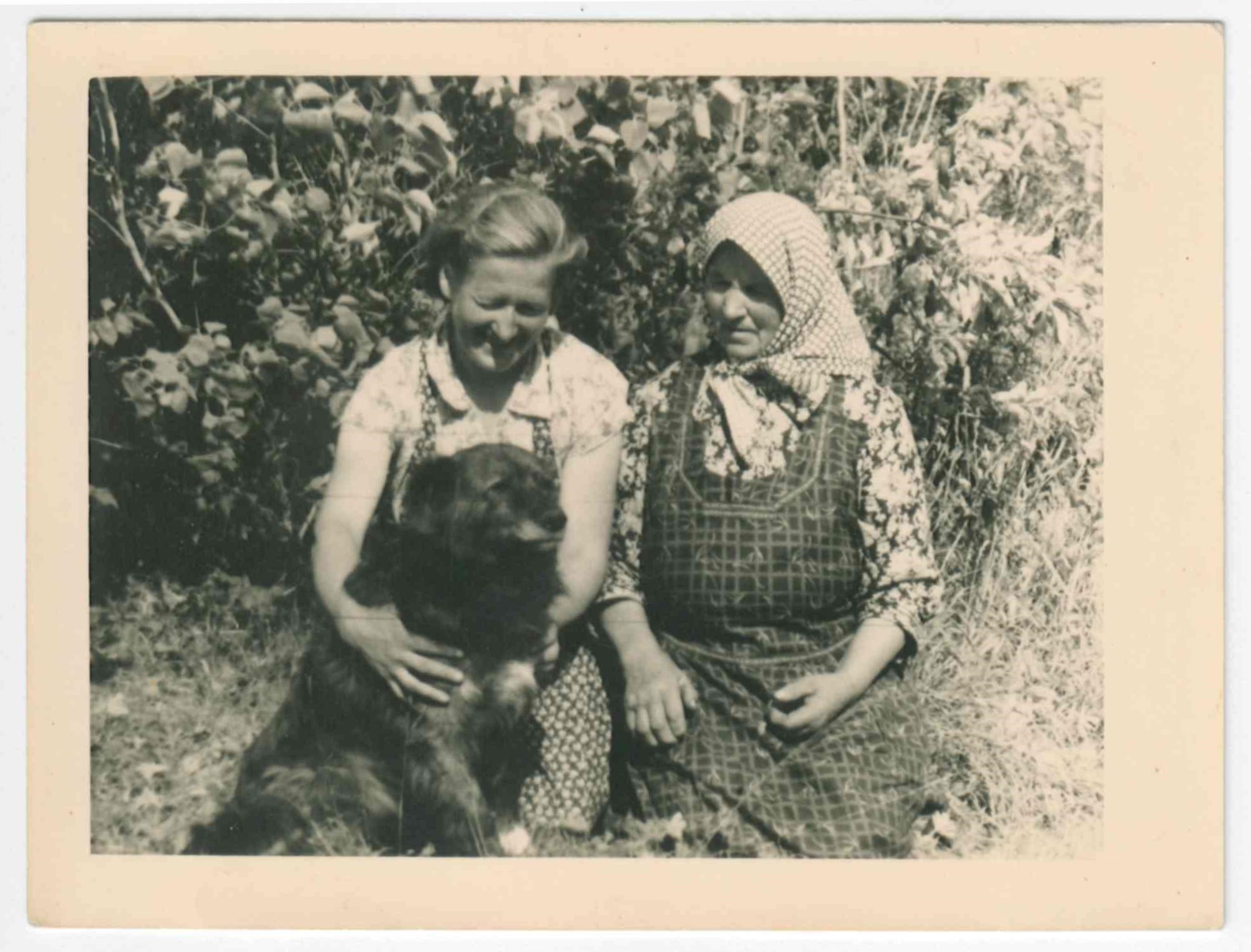 No kreisās puses: Kalnienas iedzīvotājas Ilga Stira un Jūlija Stira (dzimusi Lāce) un viņu mīļais sunītis Akbars.