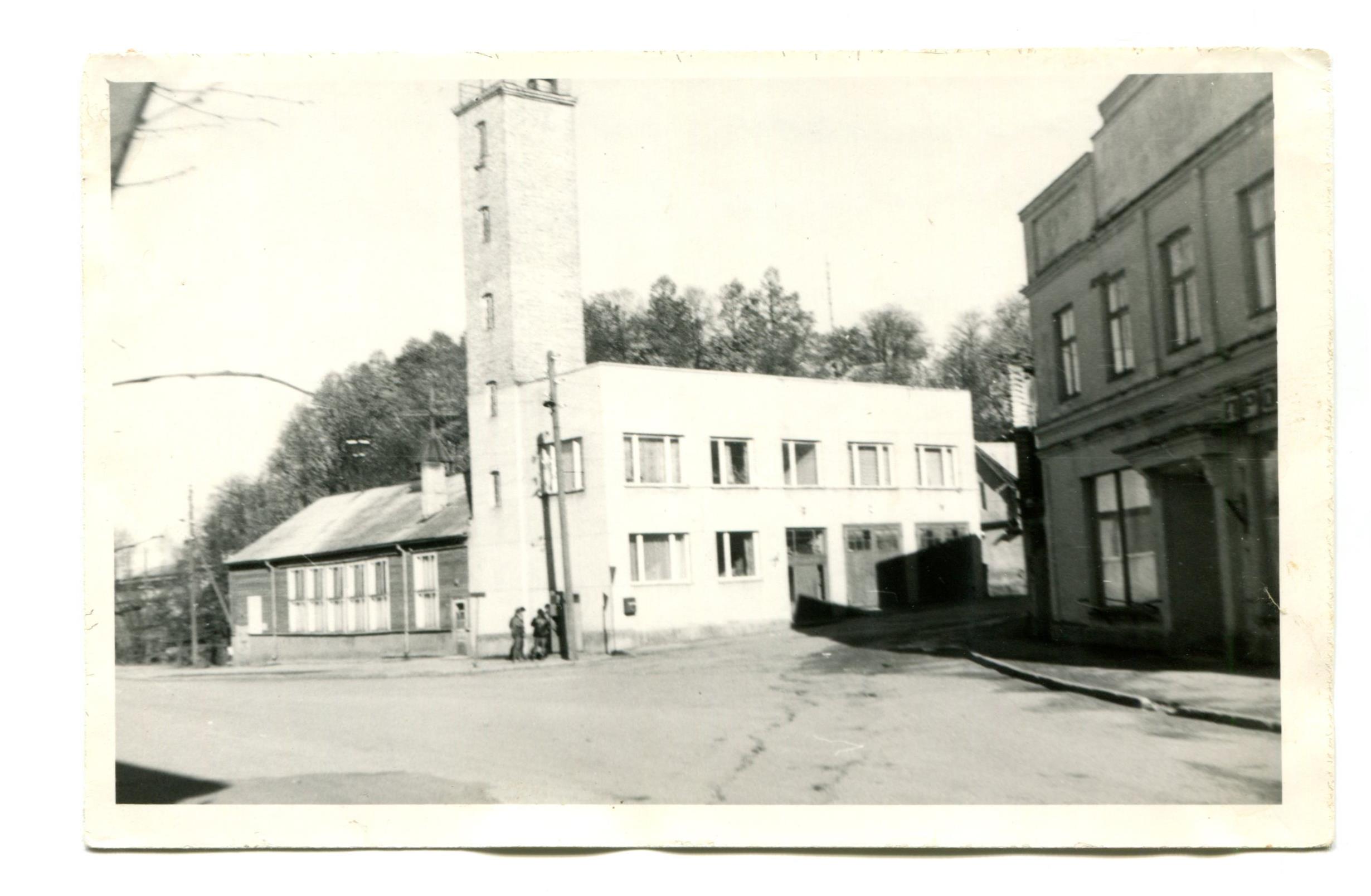 Ezeru laukuma un Kalna ielas krustojumā 1874. gadā celts Talsu miesta ugunsdzēsēju biedrības (1923. gadā pārdēvēta par Brīvprātīgo ugunsdzēsēju biedrību (BUB)) depo (fotogrāfijā pa labi no torņa). 1884. gadā pie biedrības nama uzcelts koka tornis šļūteņu novietošanai. 1935. gadā koka torņa vietā uzcelts ķieģeļu korpusa tornis. Nams torņa kreisajā pusē tika uzcelts 1926. gadā. Tur līdz 1960. gadam darbojās kino "Auseklis", līdz tas pārcelts uz Kr. Valdemāra ielu 74 (vēlāk ēkas adrese mainīta uz Nr.94). Kino vecajās telpās darbojās brīvprātīgo ugunsdzēsēju biedrība (BUB), vēlāk tika iekārtoti veikali.
