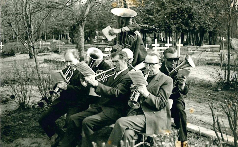 Druvienas pūtēju orķestris bēru ceremonijā Druvienas kapsētā.