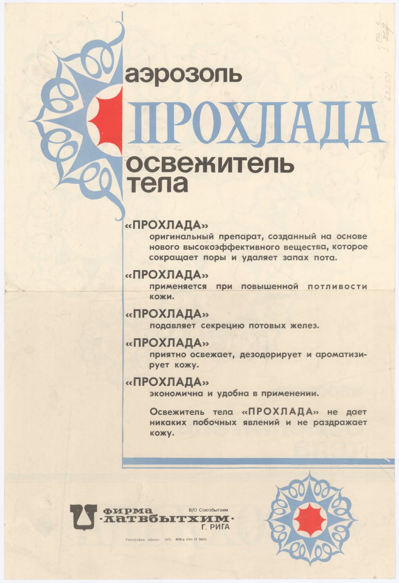 Аэросоль освежитель тела Прохлада [attēls]. Фирма "Латвбытхим" г. Рига / mākslinieks nezināms