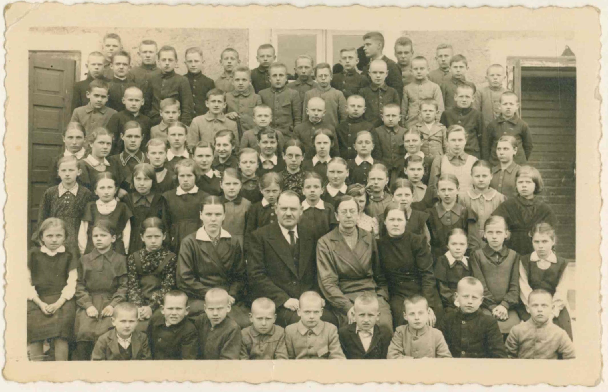 Otrajā rindā no kreisās puses piektais - skolas pārzinis Aleksandrs Rozītis