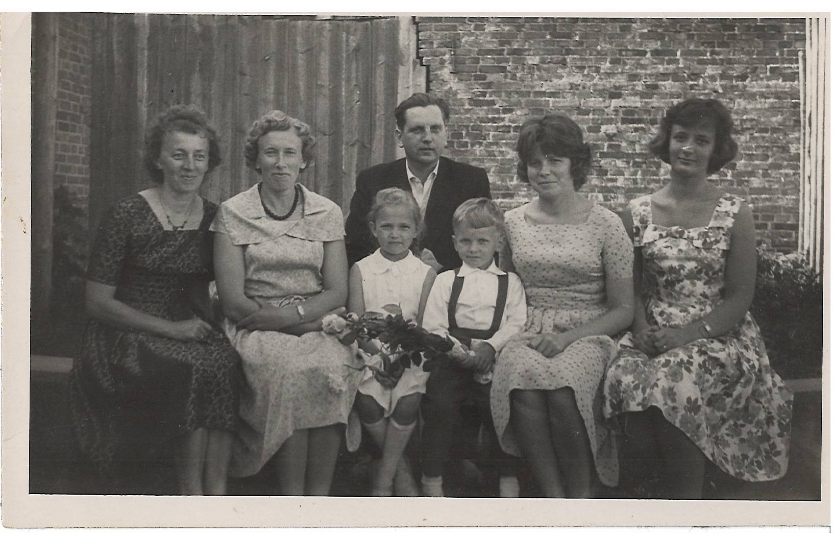 No kreisās Skaidrīte Lagzdiņa - Spāres bibliotēkas vadītāja, Skaidrīte Pērkone - sanitāre, Georgs Lagzdiņš - feldšeris, Rasma Špicberga - feldšere / vecmāte, Rasma Freiberga - zobārste. Bērni: S. Pērkones meita Ginta un Lagzdiņu dēls Ivars.