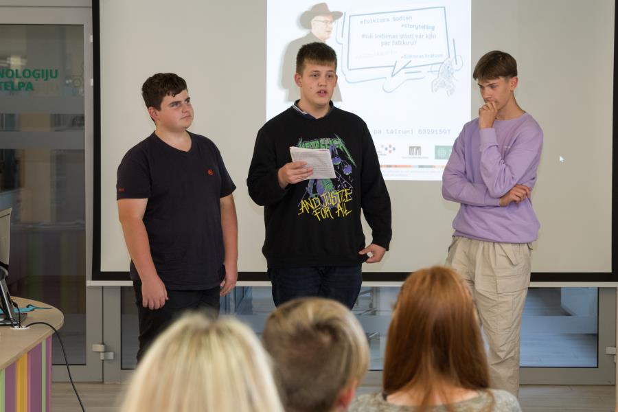 2023. gada 29. septembra nodarbībā jauniešu komanda stāsta nostāstu.