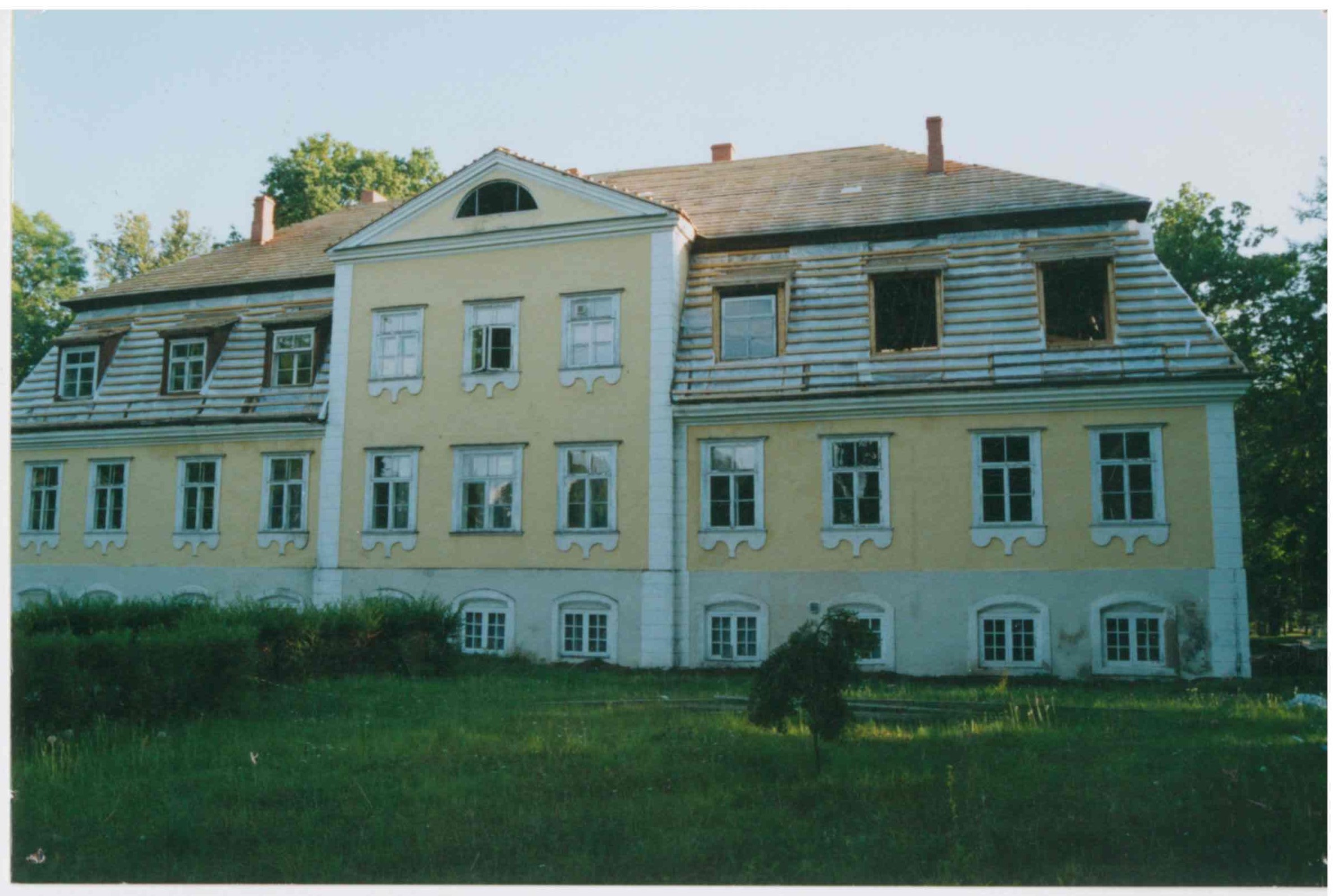 Jumta seguma maiņa un bēniņu (ziemeļu pusē) pārbūve Beļavas muižas kungu mājā. Skats uz ēku no lauces puses.