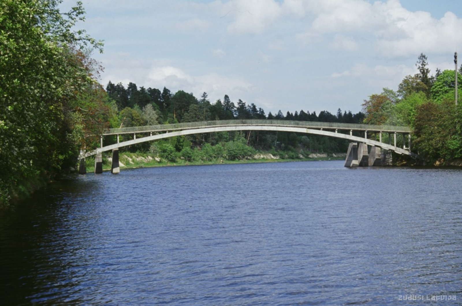 Dzelzsbetona gājēju tilts pār Ogres upi Ogrē.Vienlaiduma loka tilts. Tilta projekta autors Rīgas Politehniskā institūta docents V.Salcevičs. Uzbūvēts 1966.gadā. Tilta kopējais garums 96.2 metri