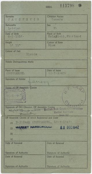 PWX/DP Registration/ Identity Card / Control Commission for Germany (British Zone) 1944-1947