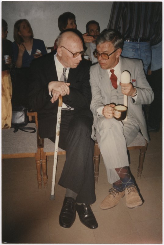 Varis Brasla un Gunars Janovskis Valmieras teātra telpās