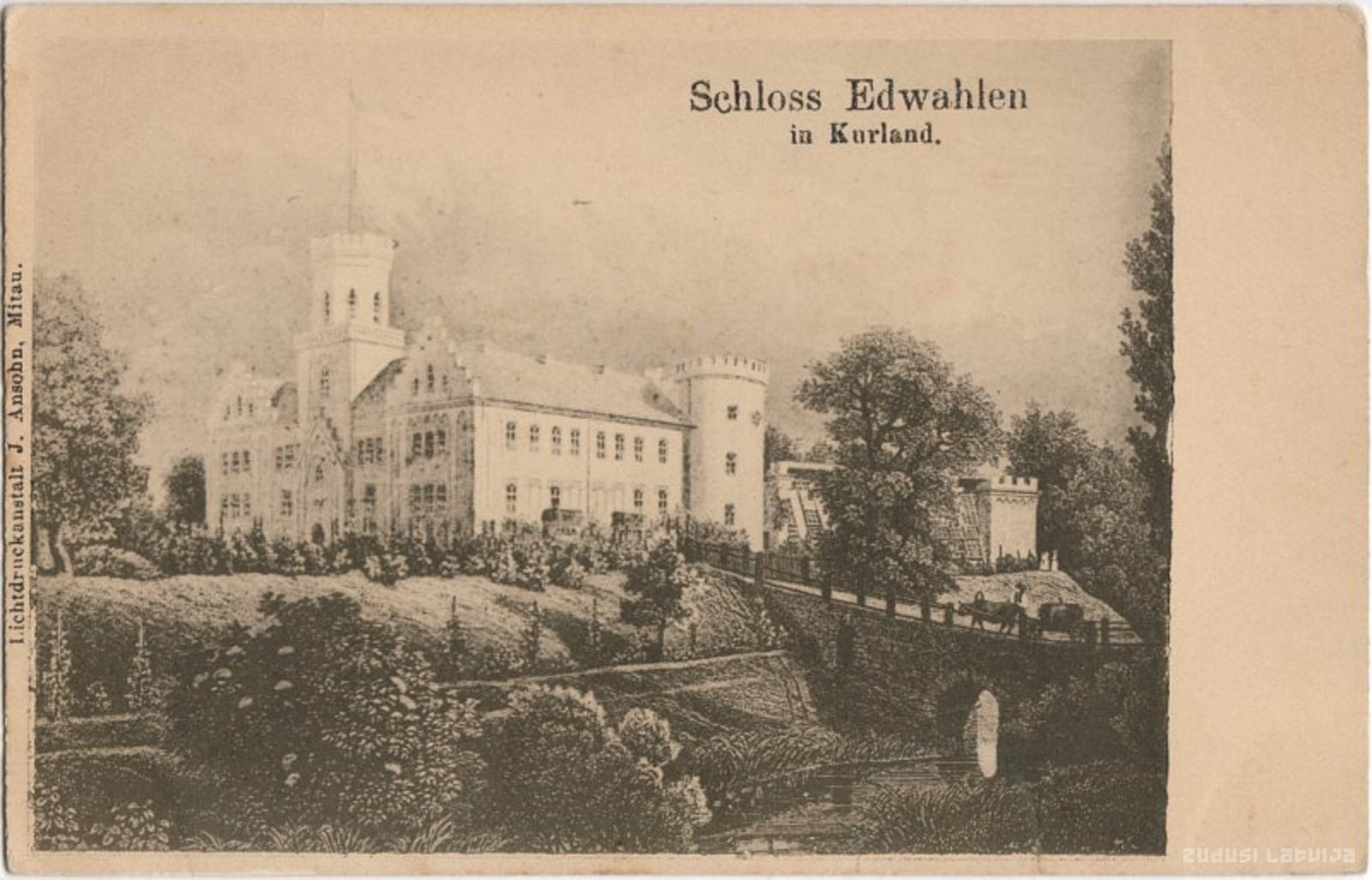 Ēdoles muižas pils celta no 1264. līdz 1276.gadam kā Kurzemes bīskapijas regulāra kastelas tipa pils. 16. gadsimtā, no 17. līdz 18. gadsimtam un no 1835. līdz 1841. gadam pili pārbūvē. Sākotnēji tā piederēja fon Ketleriem, bet 1561. gadā to ieguva Ulrihs fon Bērs un līdz pat Pirmajam pasaules karam tā piederējusi fon Bēriem. Pils pilnībā izdega 1905. gada revolūcijas laikā. Pēc dedzināšanas 1905. gadā pili atjauno. No 20. gadsimta 50. gadiem līdz 1985. gadam pilī iekārtots invalīdu nams. No 2007. gada privātīpašums. Pēdējos gados teicami atjaunots pils telpu interjers. Gravīra pēc V.Z. Stafenhāgena zīmējuma
