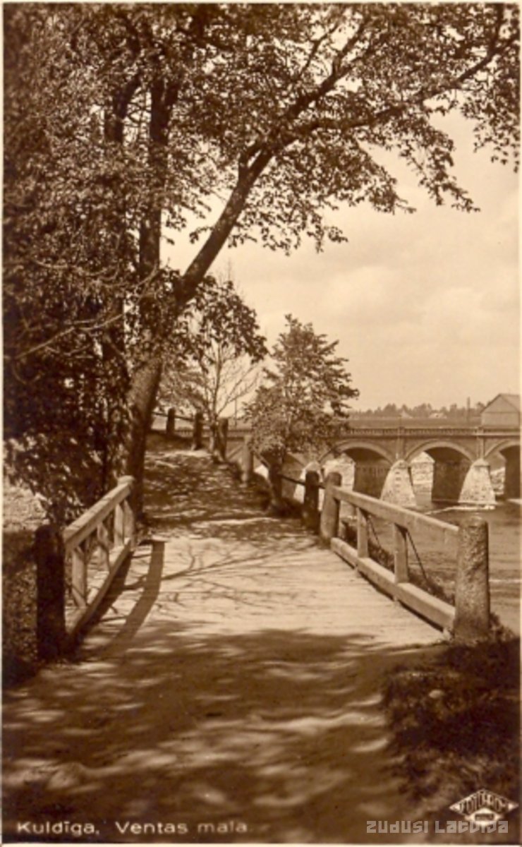 Kuldīga. Ainava Ventas kreisajā krastā ar skatu uz seno ķieģeļu tiltu
