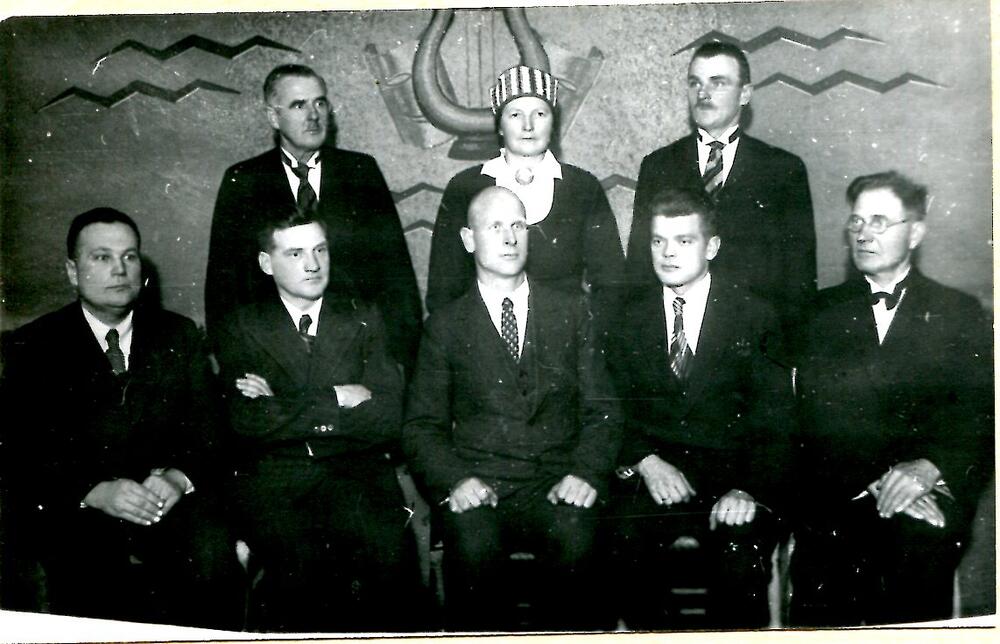 Cēsu pagasta lauksaimniecības biedrības valdes un revīzijas komisijas locekļu grupa. 1. rindā no kreisās: 3. lauksaimniecības biedrības vadītājs V. Jākobsons.