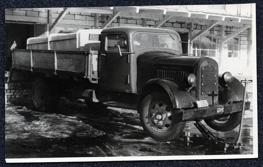 Rīgas piensaimnieku sabiedrības kravas mašīna ar piena cisternu.
