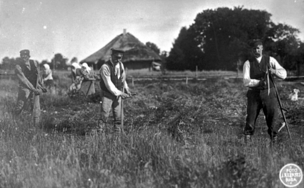 Siena pļaušana ar izkaptīm zemnieku saimniecībā Latvijā.