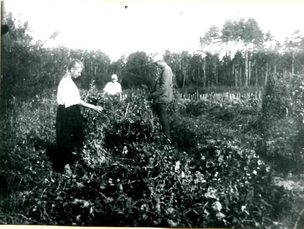 Strādnieki darba laikā vācot sēklas no kultūraugiem, kas aug uz sēklu lauka Jūrmalā.