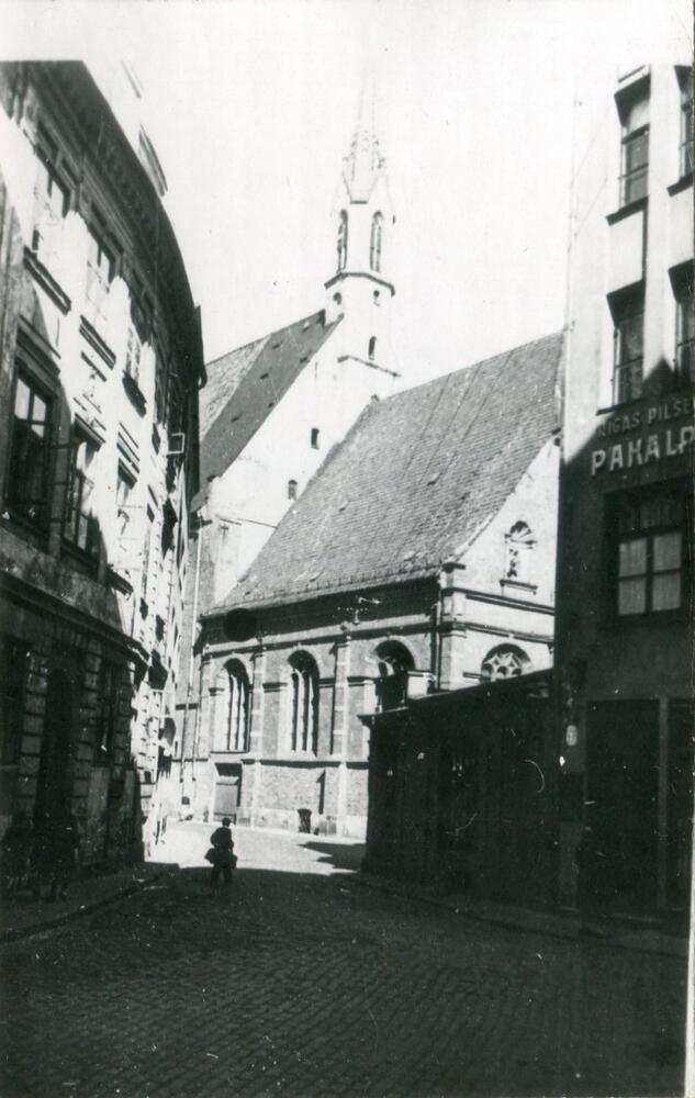 Skārņu iela Vecrīgā ar skatu uz Rīgas Svētā Jāņa baznīcu.