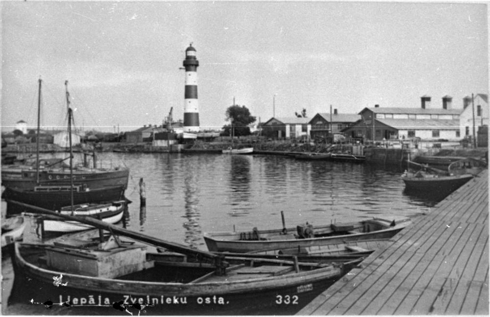 Bāka un zvejnieku laivas Liepājas zvejnieku ostā.