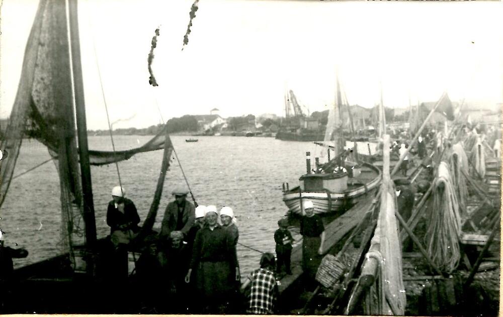 Zvejnieksievas Ventspils zvejnieku ostas piestātnē.