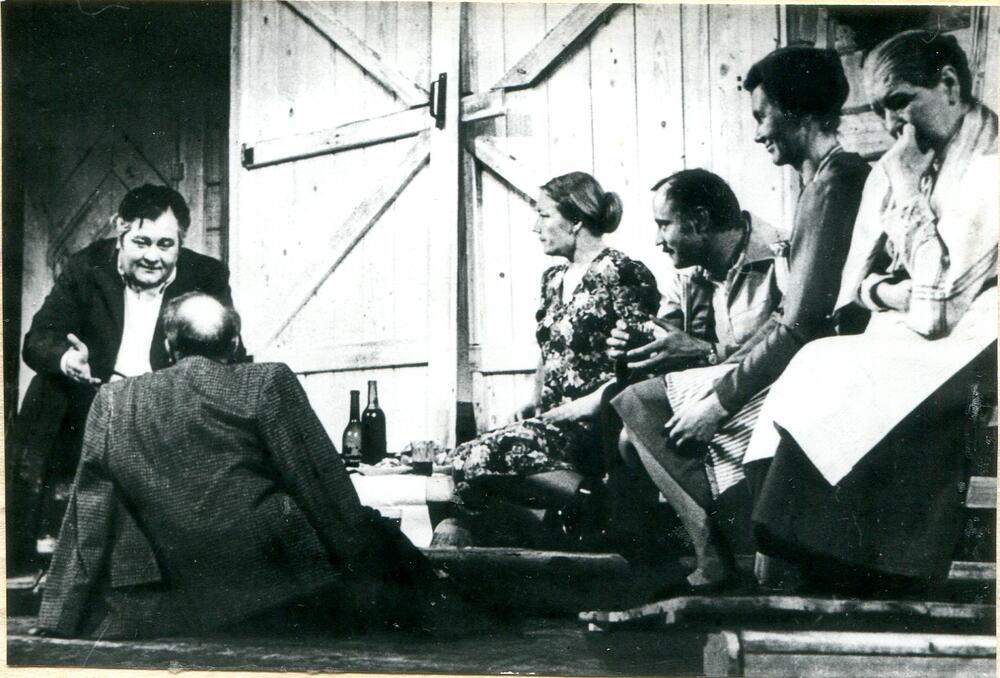 Andreja Upīša Latvijas PSR Valsts Akadēmiskais drāmas teātra (tagad Latvijas Nacionālā teātra) izrāde pēc Paula Putniņa lugas "Paši pūta, paši dega" motīviem. No kreisās: 1. Egons Beseris Dorondo lomā, 2. Antra Liedskalniņa Leļas lomā, 4. Ilga Hincenberga Skaidrītes Kāpostiņas lomā.