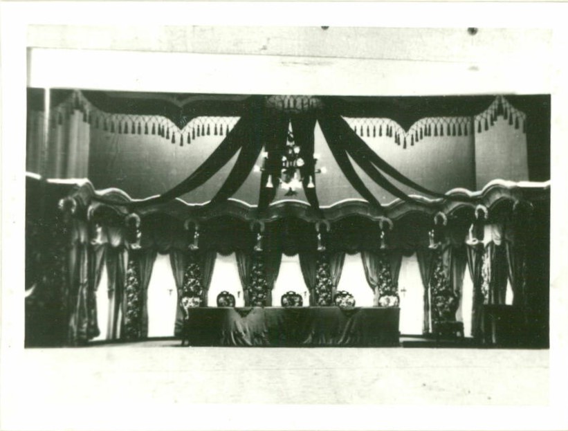 Dekorācijas Mišela Fermo lugas "Krīt klaudzot durvis" uzvedumam Latvijas PSR Andreja Upīša Akadēmiskajā drāmas teātrī (tagad Latvijas Nacionālais teātris). Autors scenogrāfs Gunārs Zemgals.